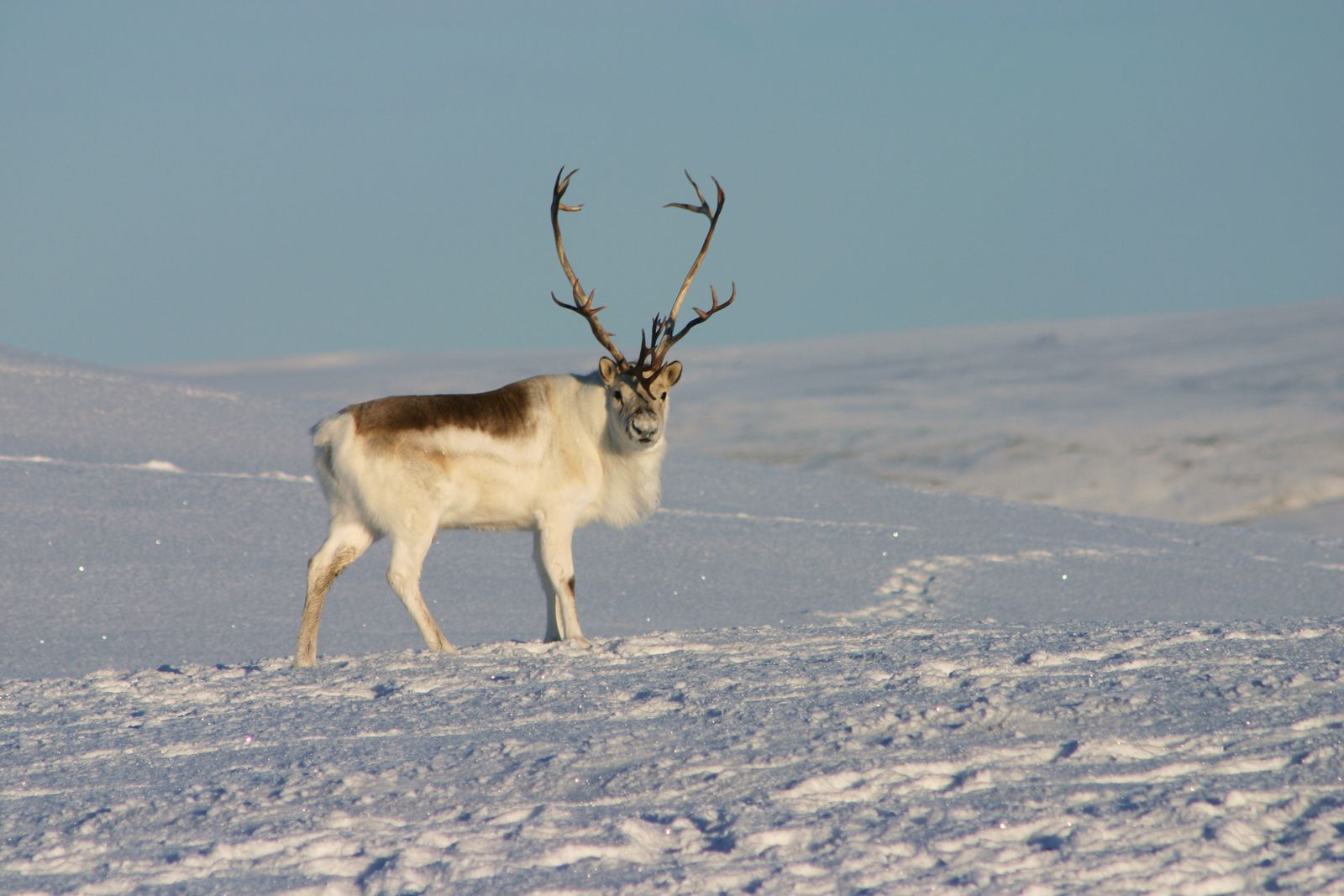 A subspecies of caribou native to the High Arctic of Canada and Greenland, Peary caribou (Rangifer tarandus pearyi) exchange their silvery summer coats for white ones with the coming of winter. They are the only subspecies of caribou to undergo such a change. Other subspecies remain brown or gray year-round, though the shades may lighten slightly with the growth of their winter coats. Peary caribou are the smallest subspecies of caribou and, because of their morphological differences, were once considered a separate species.